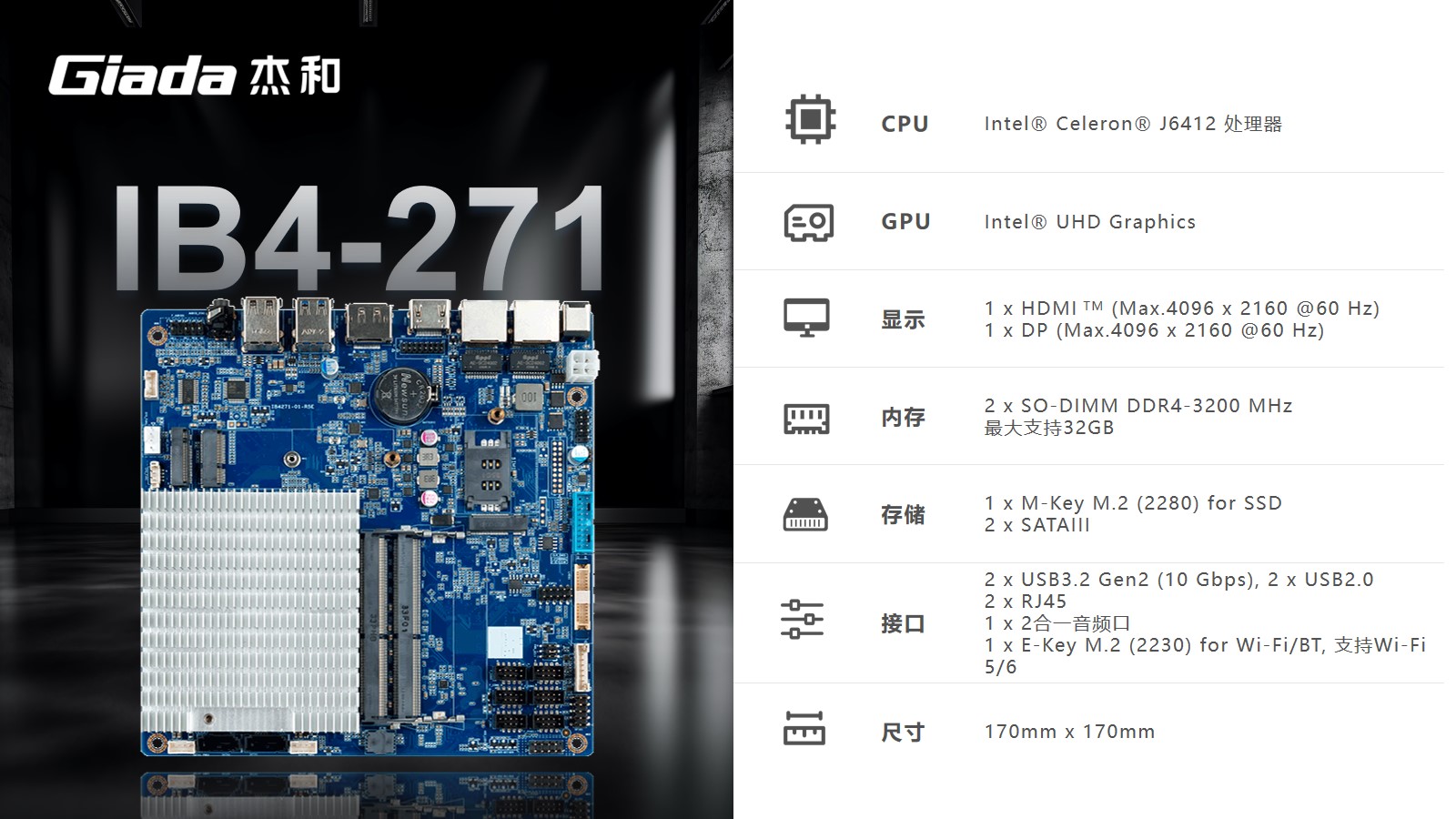 米兰IB4-271搭载的是Intel® Celeron® J6412处理器,Elkhart Lake平台在单线程性能上提升了1.7倍,在多线程性能方面提升了1.5倍,具有三个显示输出,包括DP、HDMI 和 LVDS 端口,能够为工业的多媒体应用、标牌显示和数字菜单提供足够的灵活性。