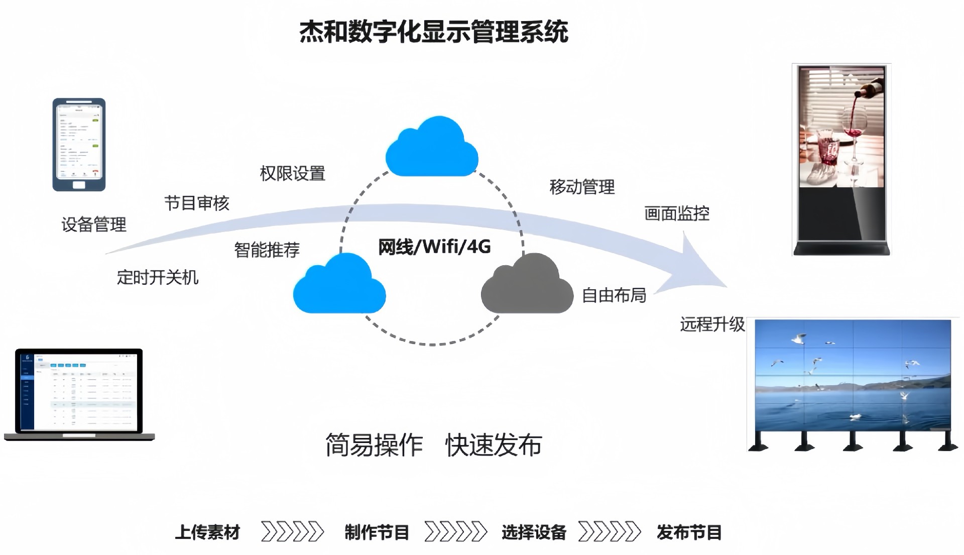 目前米兰科技GDSM-ES系统覆盖市场上多形态网络智能显示终端,满足行业全产品业态需求,如广告机、LED显示屏、LCD拼接屏 、普通液晶电视等各种显示终端,广泛用于广告宣传、通知公告、指示引导。