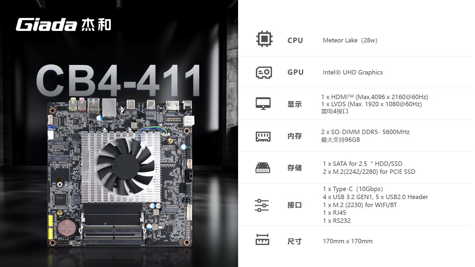 在商用计算机主板领域,一体机主板CB4-411、CB4-812-V1是米兰科技为一体机客户打造的专用主板,米兰科技CB4-411支持Intel® Meteor Lake平台处理器、CB4-812-V1支持Intel® Alder Lake 平台处理器,这类主板具有灵活性和适用性,客户可以根据特定需求进行主板的个性化配置。