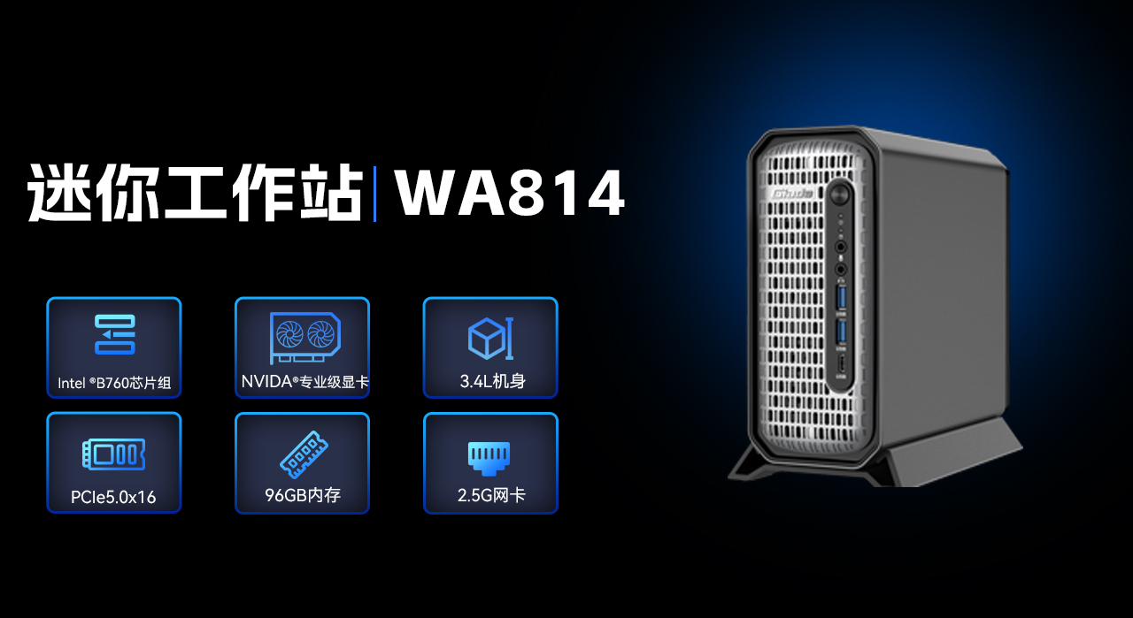 米兰科技专业迷你工作站WA814,可在小型办公室使用或者外出携带,常应用于3D建模、动画渲染、数字内容创作、AI训练等场景。在工业及交通领域,满足视频监控、环境监测、工业自动化中长时间不间断处理大量数据的需求。