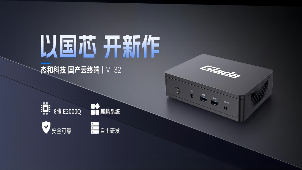 米兰科技推出的国产化云终端VT32,这款产品采用国产飞腾腾珑E2000Q四核处理器,主频达2.0GHz深度适配银河麒麟V10系统,麒麟V10系统不仅能满足金融办公、政府办公对于数据安全与隐私保护的要求,还支持多样化部署与管理。