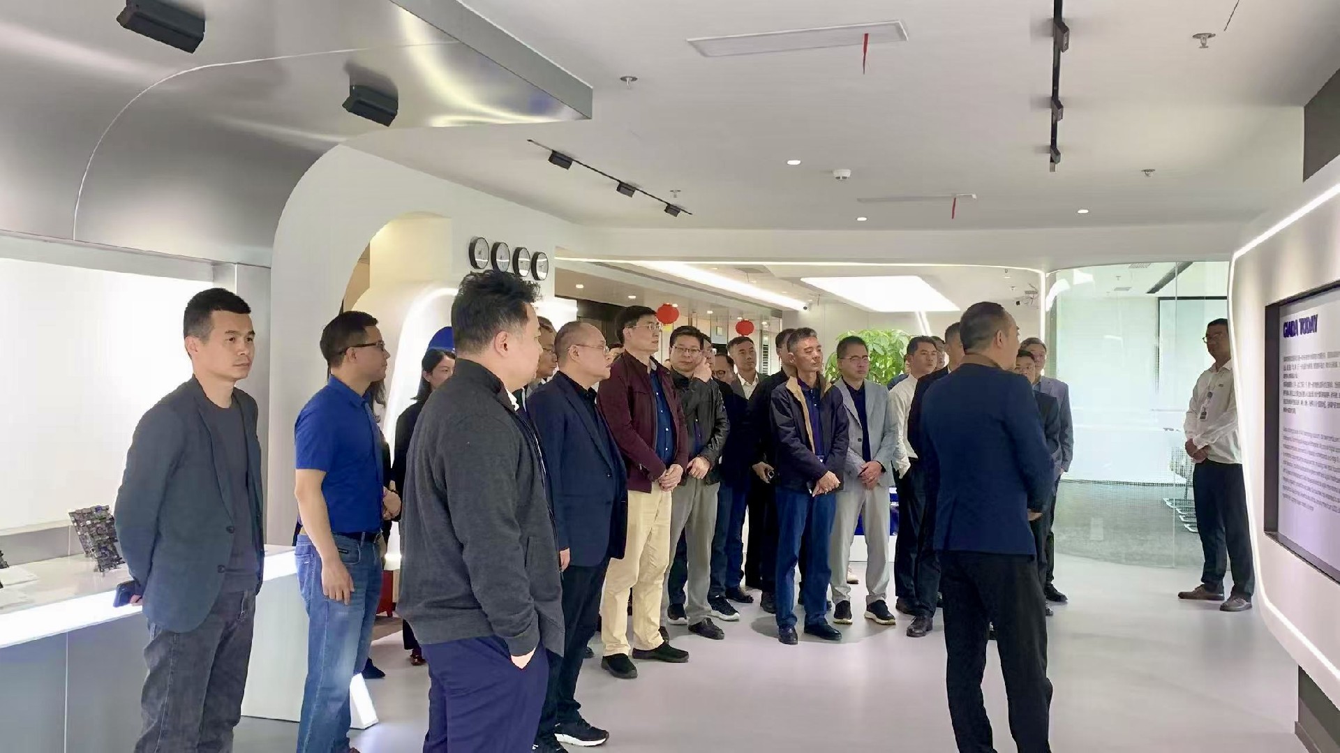 作为东道主,米兰科技带领与会嘉宾参观数字化展厅,重点呈现企业历程、AI算力产品以及一系列自主研发成果。展厅内多项专利技术及行业解决方案,直观展现了企业在智能制造、智慧零售等领域的技术沉淀,为后续研讨提供了实践参考。