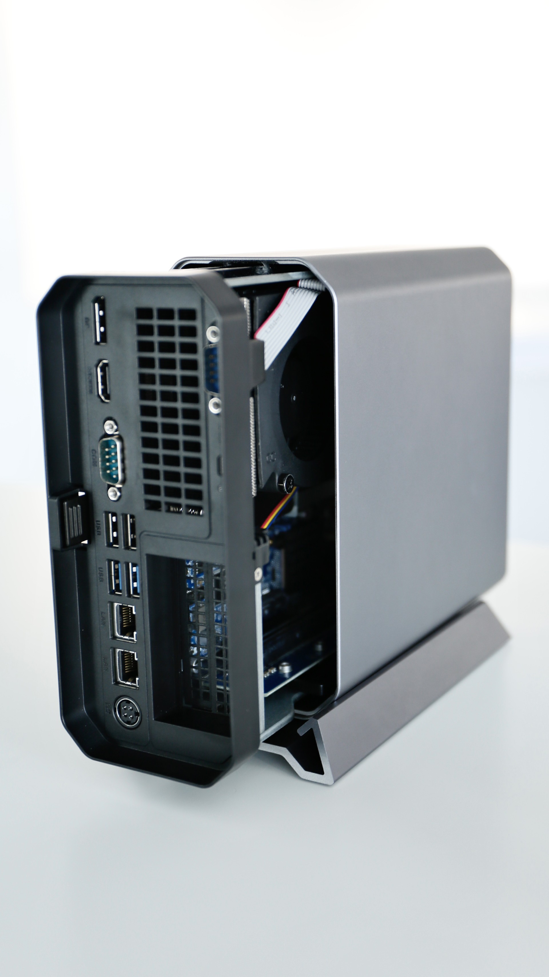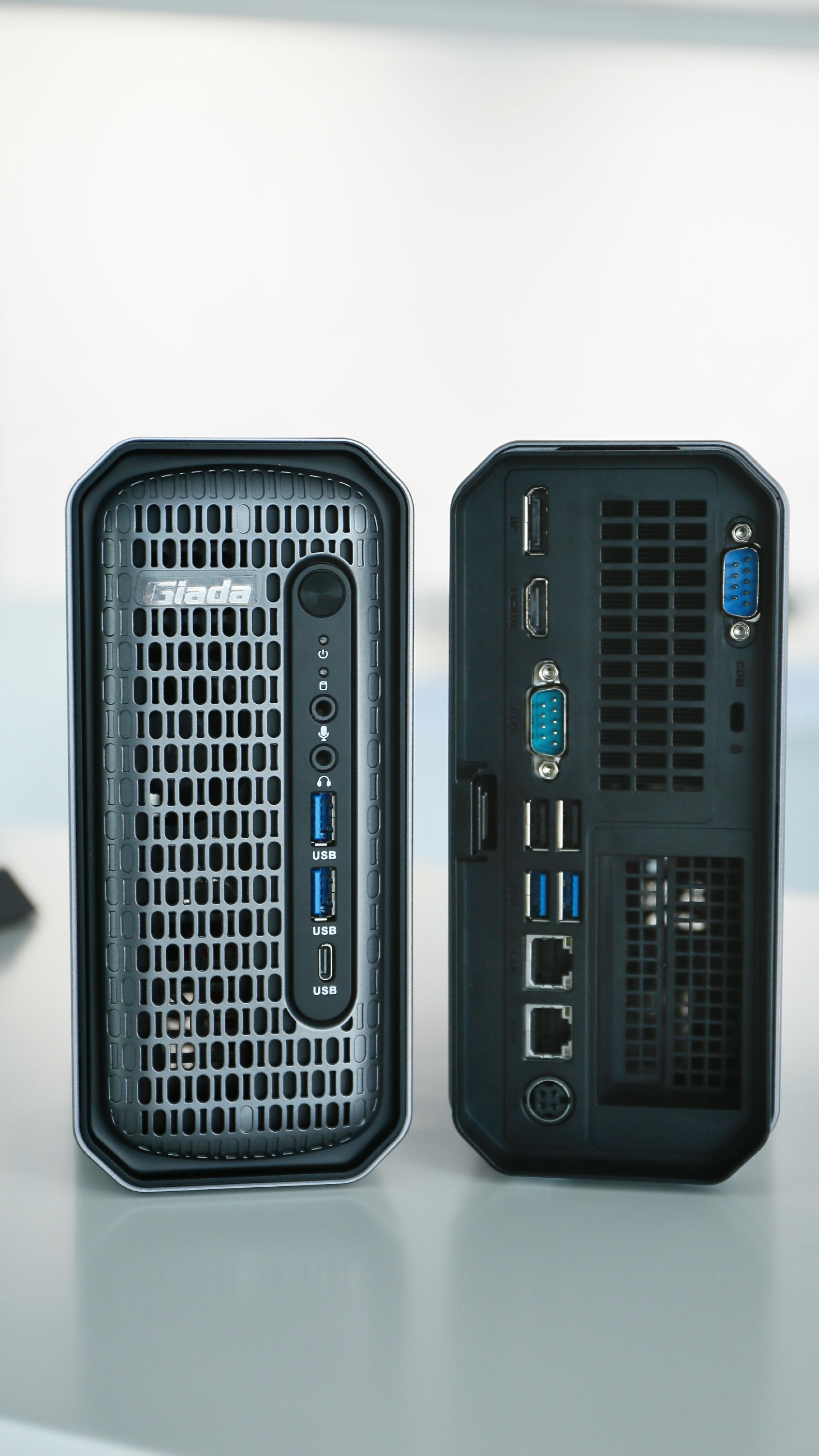 背面则集成了多种专业接口,包括两个USB 3.2 Gen1接口和两个USB 2.0接口,可满足多设备接入需求;1个DP接口与1个HDMI接口支持双屏高清输出;另有1个VGA接口,兼容更多显示设备;双网口配置,提升网络稳定性;两个COM口则适用于工业设备接入,兼具稳定性与扩展性。