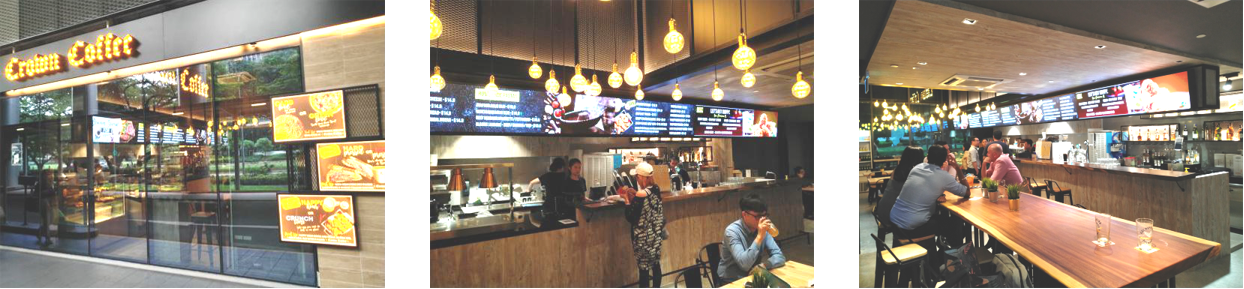 在已经落成的咖啡店实际案例中,由米兰G330六屏拼接播放器控制的6块LCD高清液晶显示屏,被分为4组:3组悬挂在点单吧台的单屏信息牌,通过米兰GDSM系统平台,随时更新和展示店内供应的产品,并推送相关产品广告;1组展示在店外玻璃橱窗中的三屏拼接播放器,用于播放在米兰GDSM系统平台中保存,制作精良的宣传视频和推广活动信息,有效提升推广策略的引流能力。