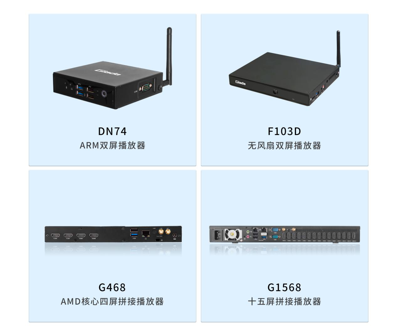 面对需求多样的市场环境,除米兰G330六屏拼接播放器外,米兰科技相继推出了G468四屏拼接播放器、G968九屏拼接播放器、G1568十五屏拼接播放器等多平台、多规格产品,均能够与米兰GDSM商显系统平台完美适配,为商家的实际需要,供应选型完整的家族式产品。