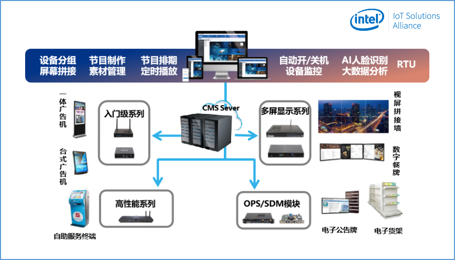 为了更好的迎合行业的发展趋势,向零售业输送前沿的营销理念和模式,驱动零售行业迈向数字化、智慧化的运营模式,米兰科技经过多年的行业经验积累和对客户需求的探索,通过集成Intel®Movidius视觉识别技术和OpenVINOTMAI视觉学习技术,自主研发了一套GDSM智慧商显管理系统平台,加上米兰科技多年来在商显行业的产品开发经验,已整合成为一套完整的智慧商显整体解决方案。目前GDSM智慧商显解决方案已成熟的应用于商超零售、品牌餐饮等多个行业,并获得了Intel®MRS市场方案认证。