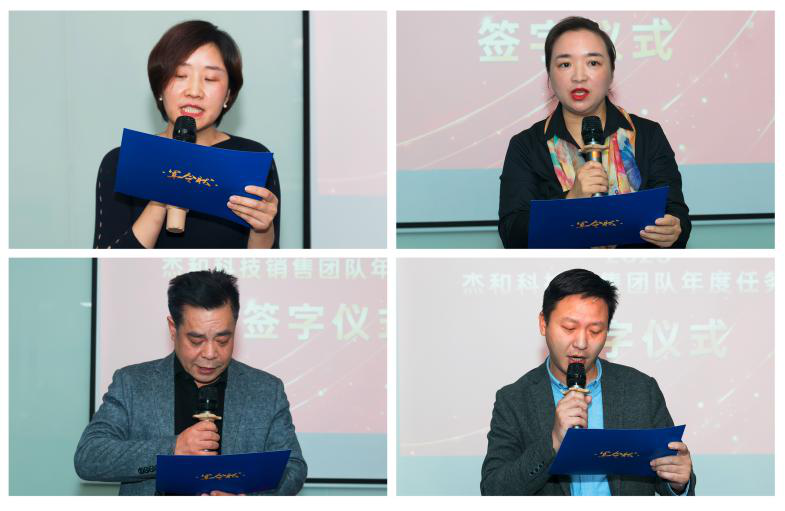 销售目标签约仪式上销售人员的激情和昂扬斗志,各职能部门的负责人也不甘示弱,智能硬件开发部总监李华东上台表示:新的一年产品和研发会在产品线上持续丰富,同时以销售目标为导向来打造高品质产品线,打造强有力的研发团队,做到让销售精英们无后顾之忧!