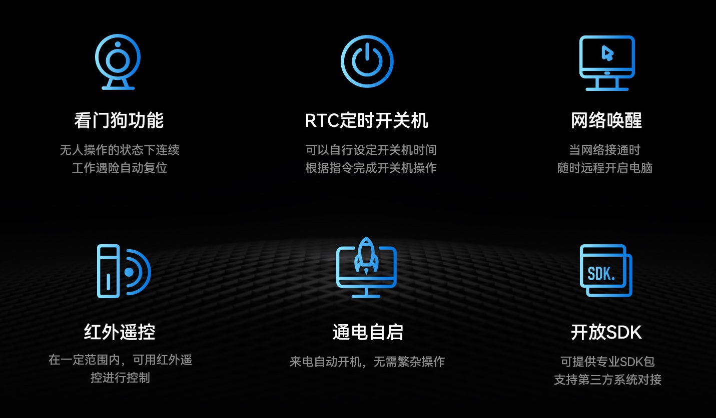 米兰科技DE76B4支持Android操作系统,配置高可靠无人值守专利技术,包括定时开关机、看门狗计时器、RTC宕机自检、红外遥控和局域网唤醒等功能,可以有效降低能源消耗,节省人力维护成本。采用被动冷却系统,无需风扇运转,运行时无噪音和防尘,降低故障率,并达到0℃~60℃宽温工作标准,可在复杂电磁环境等各种条件下稳定运行。
