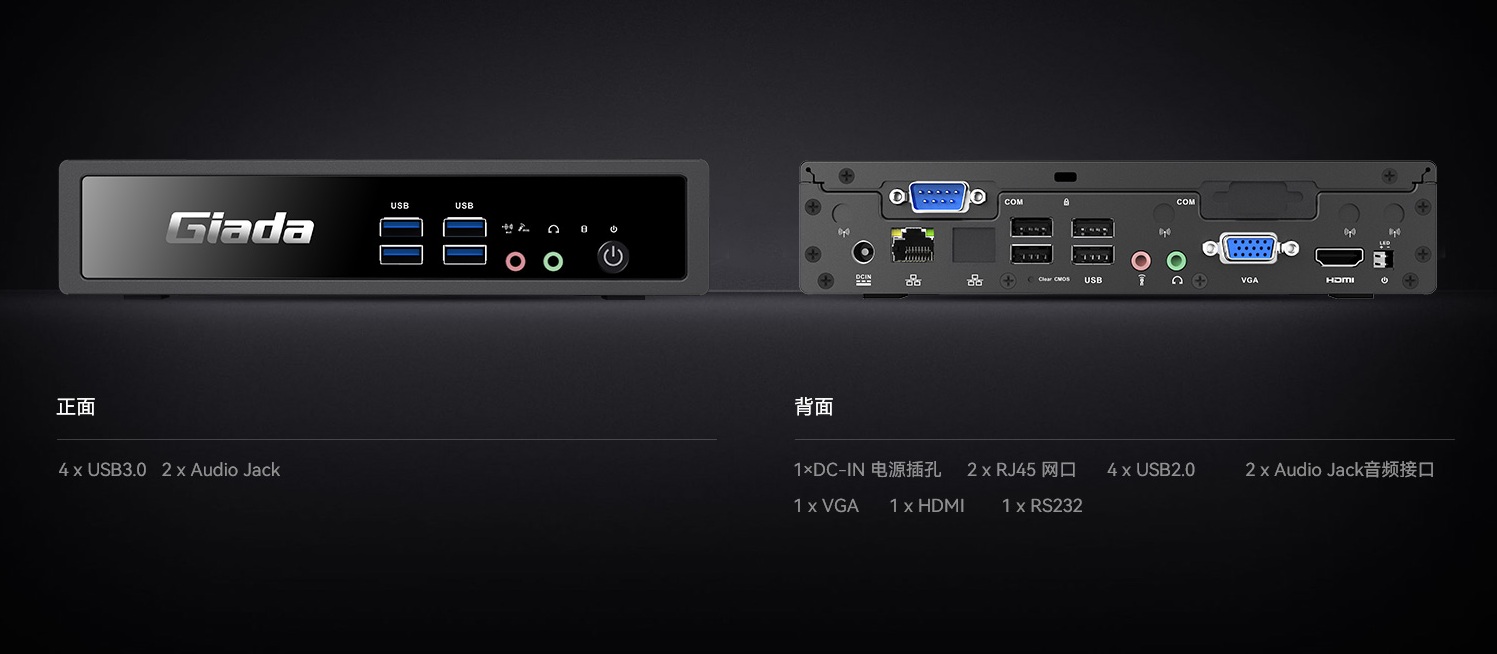 米兰云终端BW612机身背面配备四个USB2.0接口,两个3.5mm 音频接口,两个千兆网线接口,一个VGA和 HDMI 接口,兼容几乎全部主流外设,满足云终端全场景接口使用需求,同时正面配备两个3.5mm音频接口,四个USB3.0接口,满足即插即用的设备需求。