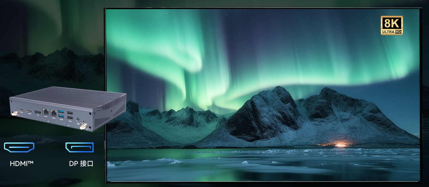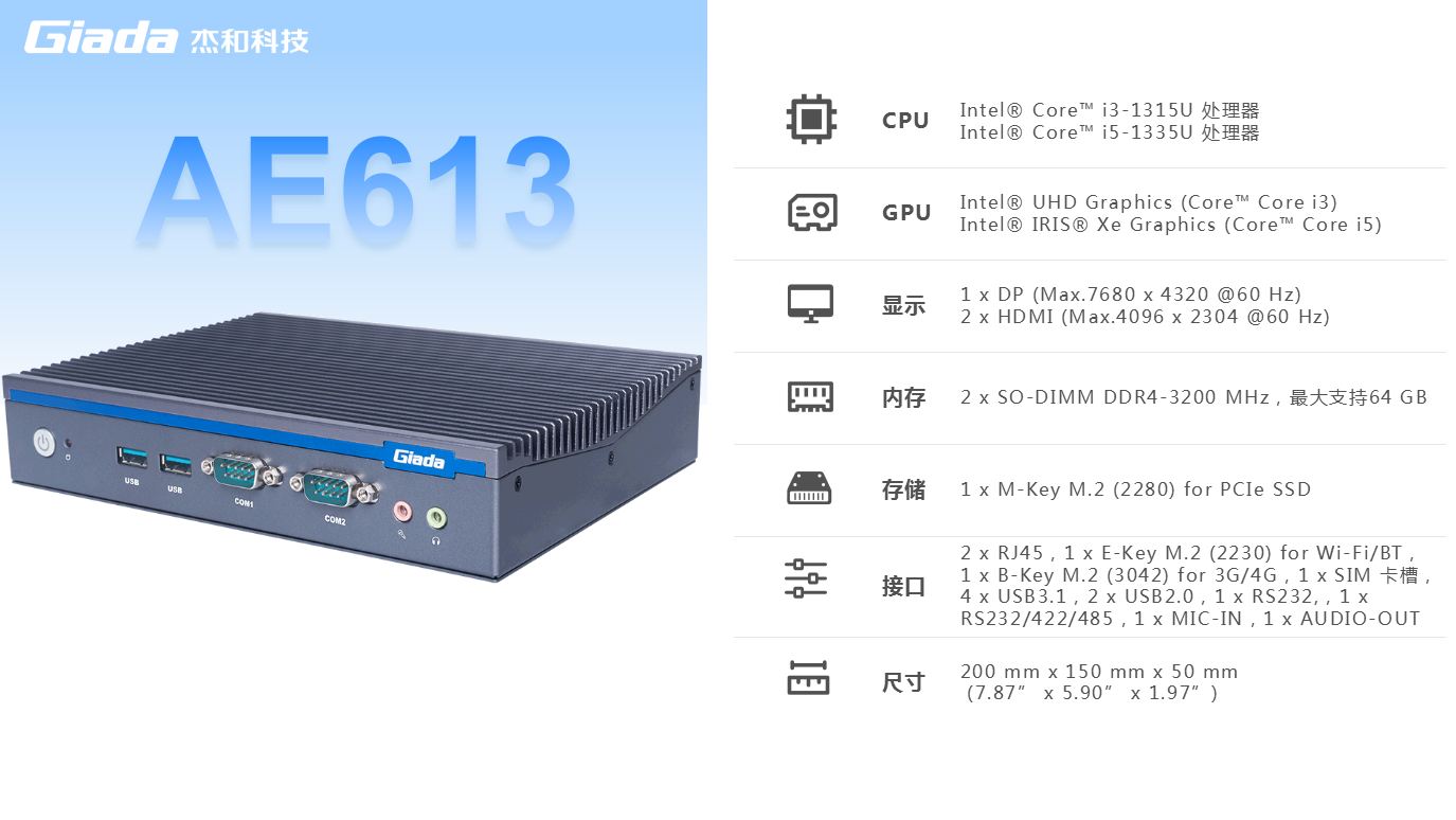 米兰科技AE613支持Windows 11 (64bit) /Linux Ubuntu (64bit)系统,双千兆自适应RJ45网口,4 x USB3.1 (10 Gbps),2 x USB2.0,1 x RS232,,1 x RS232/422/485,1 x MIC-IN,1 x AUDIO-OUT,丰富的I/O功能接口,实现更多功能扩展。