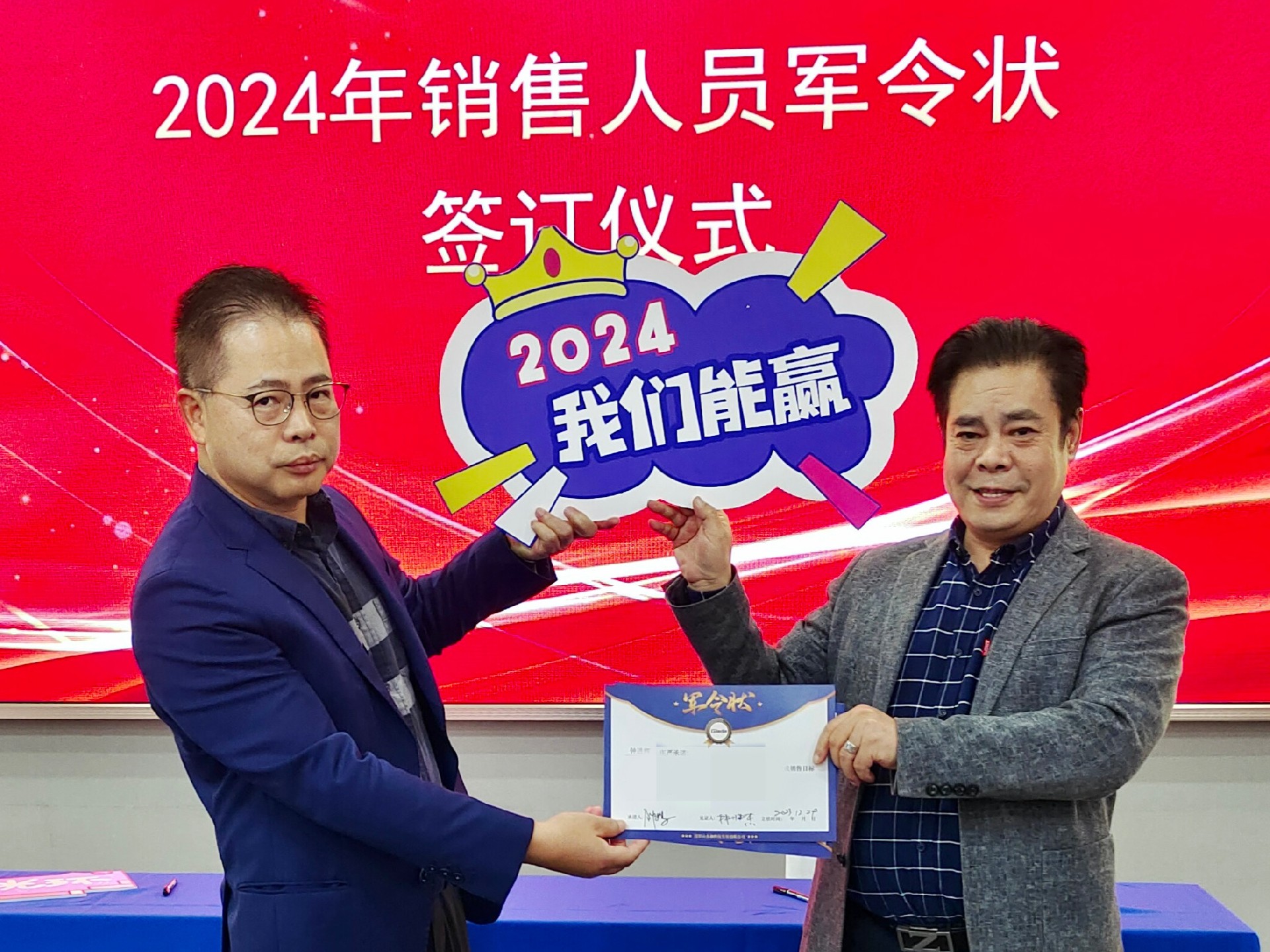 2024公司年度战略目标确立,言出必行,使命必达,国际/国内销售团队为了共同的目标开始军令状签约仪式。一纸军令状,是米兰科技与销售人员的双向承诺,是压力,更是动力。是不破楼兰终不还的决心,更是春风得意马蹄疾,一日看尽长安花的期待。
