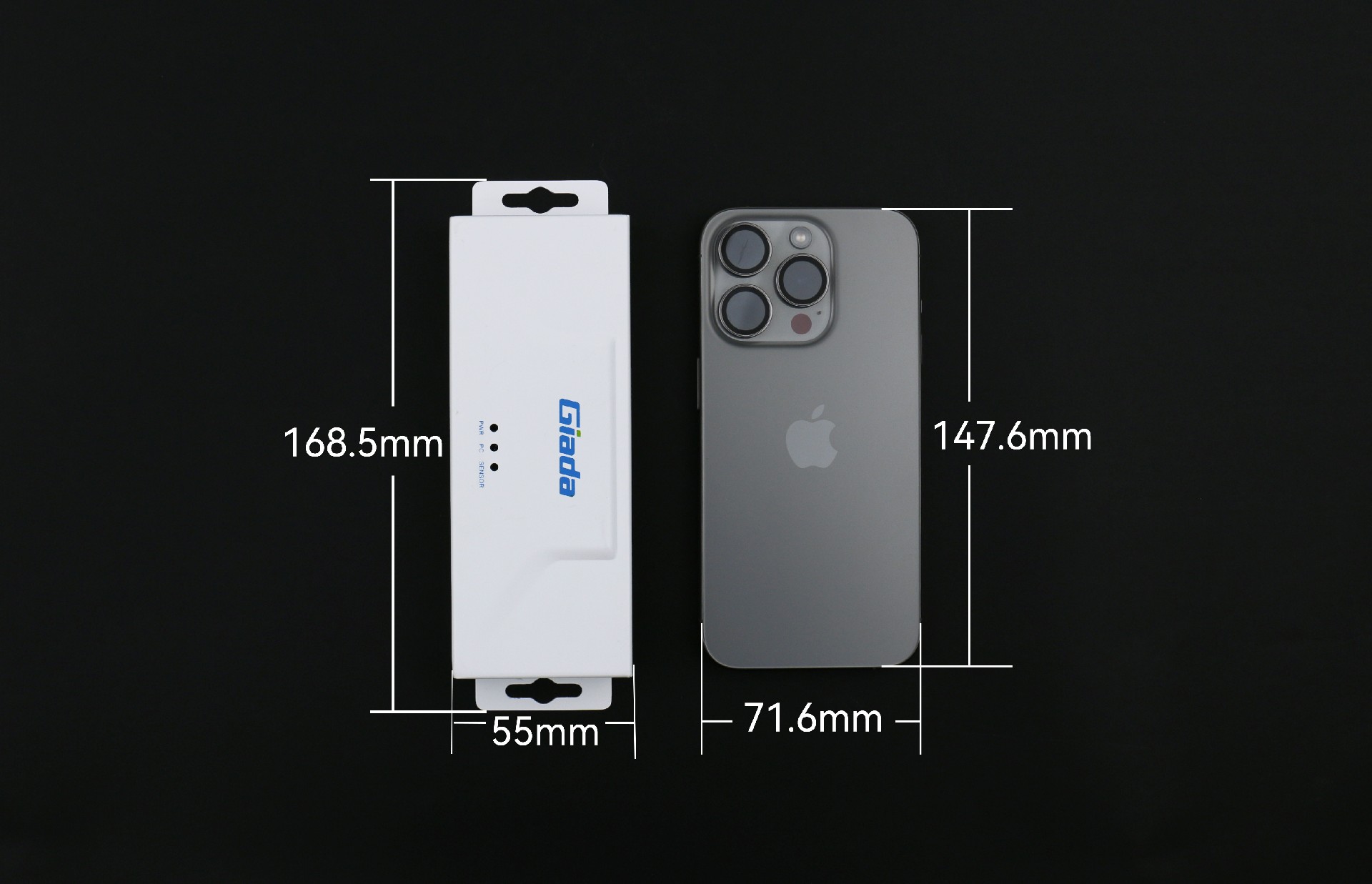 米兰RD01的尺寸为168.5 mm x 55 mm x 24mm,与iphone 15的尺寸对比,除去挂耳,中部本体与其高度接近,体积小巧精致。