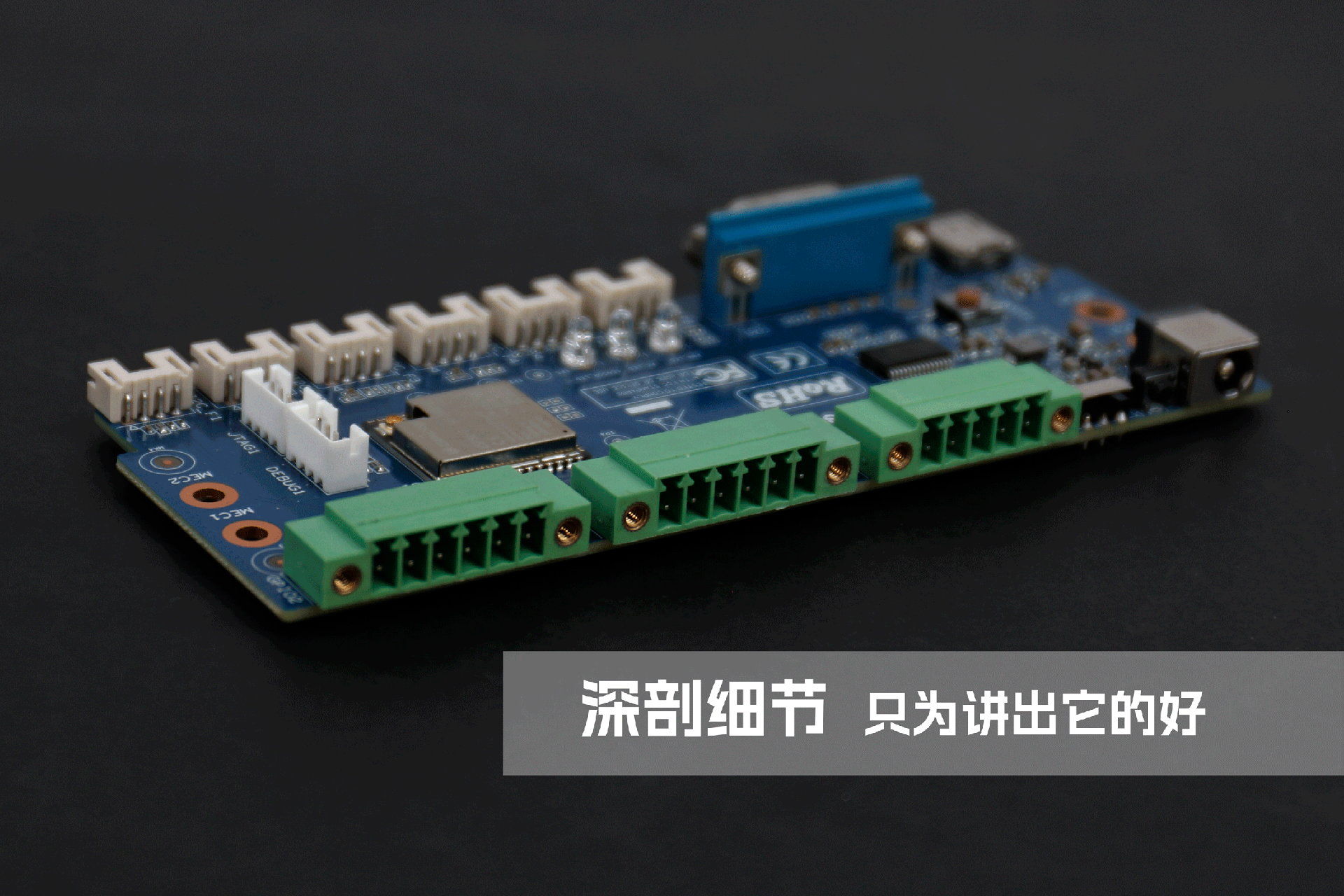 米兰RD01作为物联网拓展坞,用户首先关心的是接口设置和性能,为更直观了解其细节和接口设置,我们将通过内部主板与其进行同步赏析。主板整体配色为深蓝色,元器件排布整齐,整体做工精细。