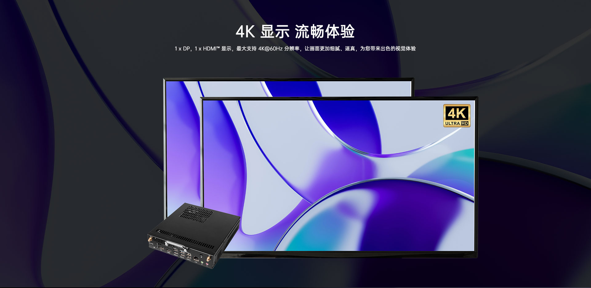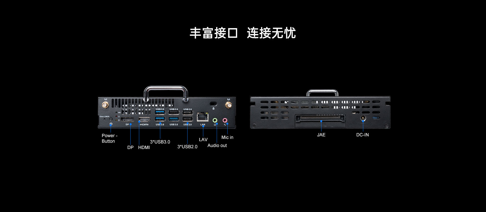 1 x JAE(HDMI),1 x  DP, 1 x HDMI显示,支持4K60Hz显示